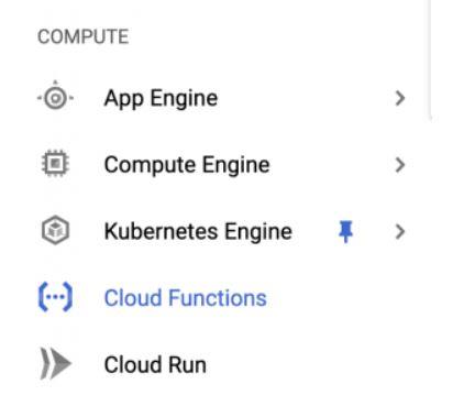 Firstly open in Google Cloud Console, use the menu left-hand top of the screen after that go to under Compute Engine, and select Cloud Function.
