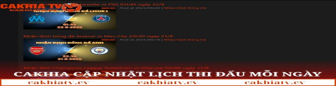 Cakhiatv là địa chỉ quen thuộc của hàng triệu người hâm mộ Việt Nam khi muốn theo dõi bóng đá trực tuyến với chất lượng hình ảnh sắc nét, tốc độ truyền tải ổn định, không giật lag. Trang web cập nhật link xem nhanh chóng mỗi ngày, giúp người dùng dễ dàng truy cập vào các trận đấu lớn nhỏ. Tại Cakhiatv, khán giả có thể theo dõi đầy đủ các giải đấu hàng đầu thế giới như Ngoại hạng Anh, Champions League, La Liga, Serie A và nhiều giải quốc nội khác — hoàn toàn miễn phí. Với giao diện thân thiện, dễ sử dụng cùng hệ thống server mạnh mẽ, Cakhiatv cam kết mang đến cho người xem trải nghiệm bóng đá trực tuyến trọn vẹn và đáng tin cậy.