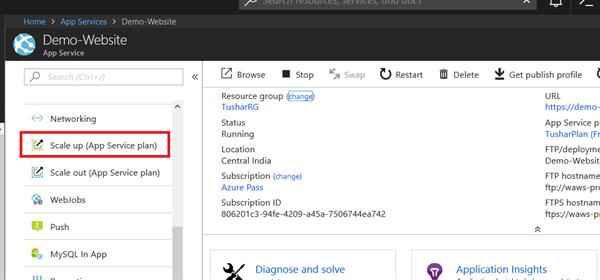 - In the left navigation of the app page, scroll to the Settings section and select Scale up (App Service plan).