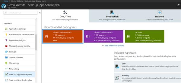 - Select any of the non-free tiers (D1, B1, B2, B3, or any tier in the Production category). For additional options, click See additional options.
