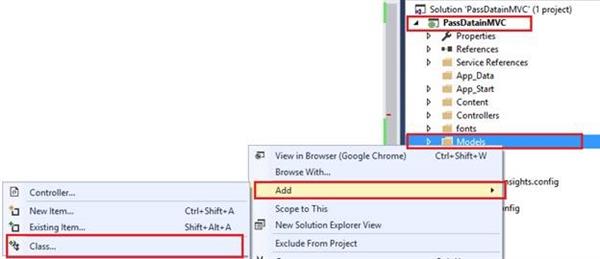 Add a Model class by right clicking on Models folder under Solution.