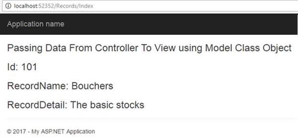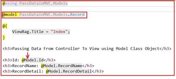 There are many ways to pass Model class data to the View, using a Controller class. In this article, I'm showing how to pass the data from Controller to View by using a simple example. Thus, let’s start and flip to your Visual Studio 2015.