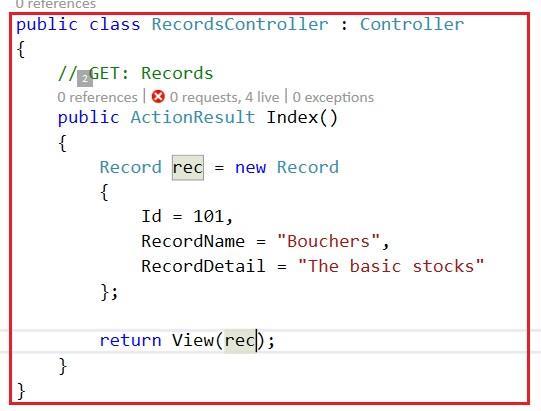 Controller is ready now. By using ViewBag, we can pass the data from Controller to View.