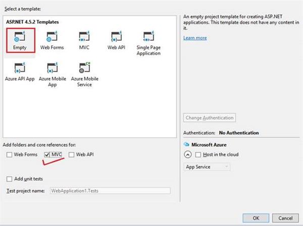 I don’t want to use a full MVC based solution. The article is based on a simple example, so just select an Empty template.
