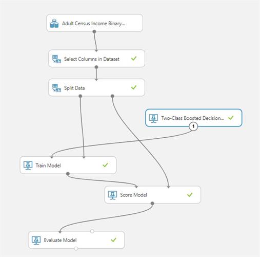 - Import Two-Class Boosted Decision Tree and connect to the Train Model.