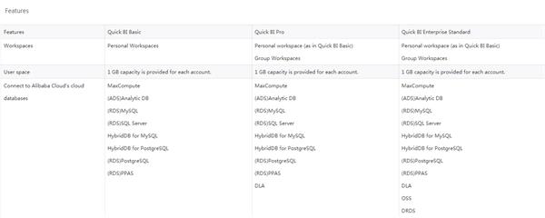 Token - What's the difference between Quick BI Pro & Quick BI Enterprise Standard?