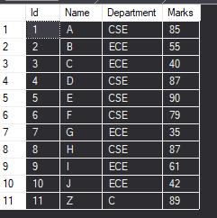 Initially, the table is as follows but we will notice the changes after executing the stored procedure.