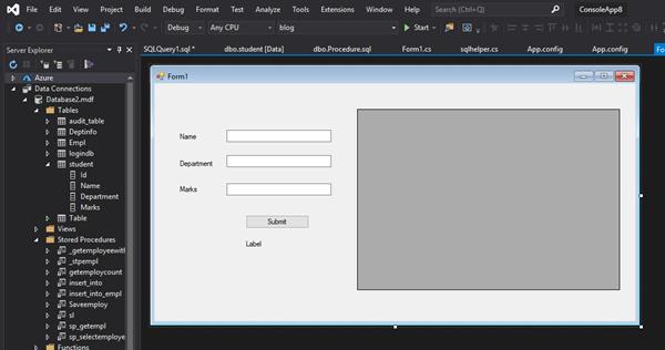 Now we develop a windows form application and we will be executing the stored procedure using the C# code. The front end of the application will look as follows