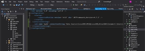 Now we provide the connection string in the App.config file to provide the connectivity with the database to the application.