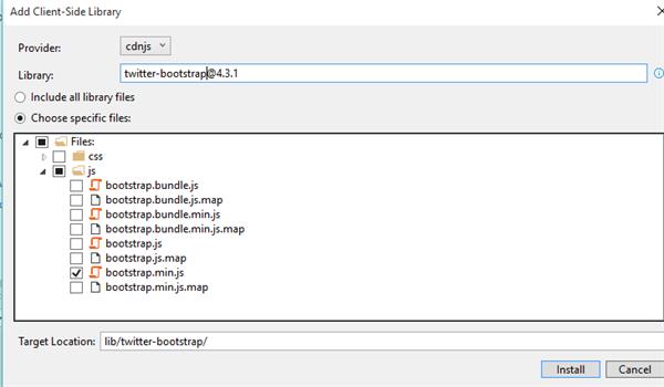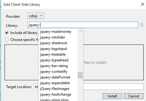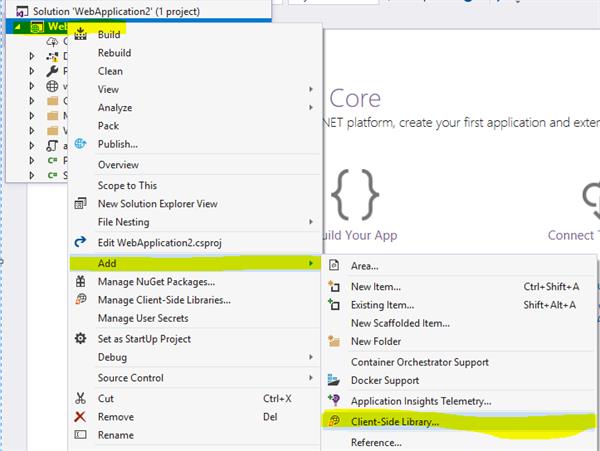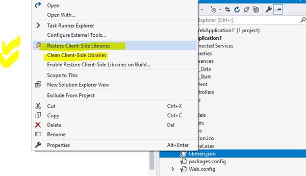 - Right-click the project in Solution Explorer and select Manage Client-Side Libraries.
