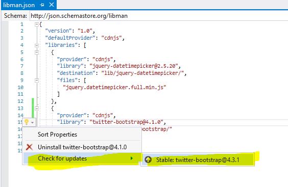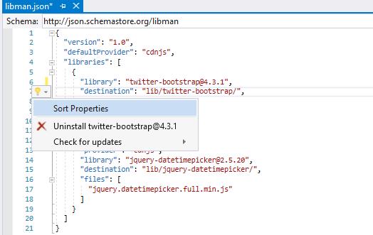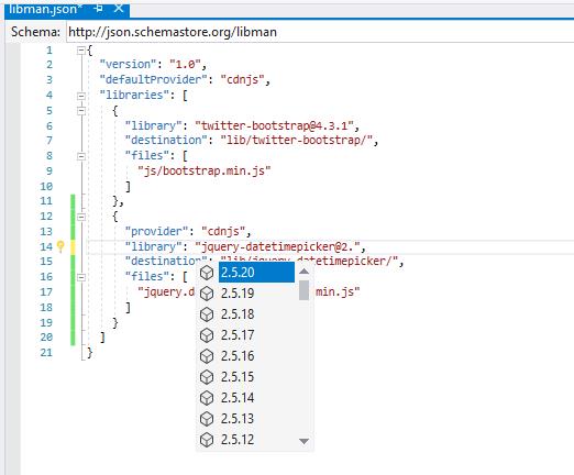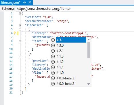 - Double-click the libman.json file in Solution Explorer.