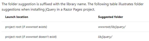 Restore Client-Side Libraries: To restore library files from within Visual Studio, there must be a valid libman.json file in the project root. Restored files are placed in the project at the location specified for each library.