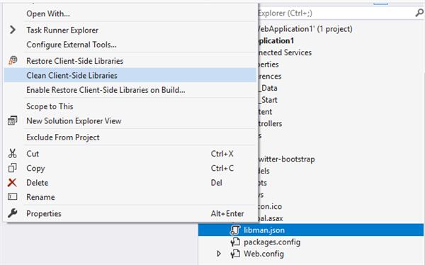 Clean Client-Side Libraries: To perform the clean operation, which deletes library files previously restored in Visual Studio: