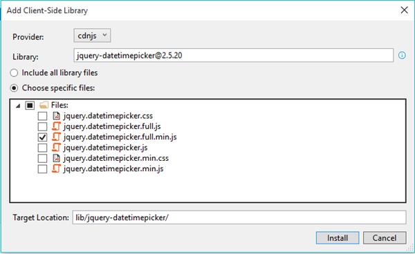 - Use the Add Client-Side Library dialog