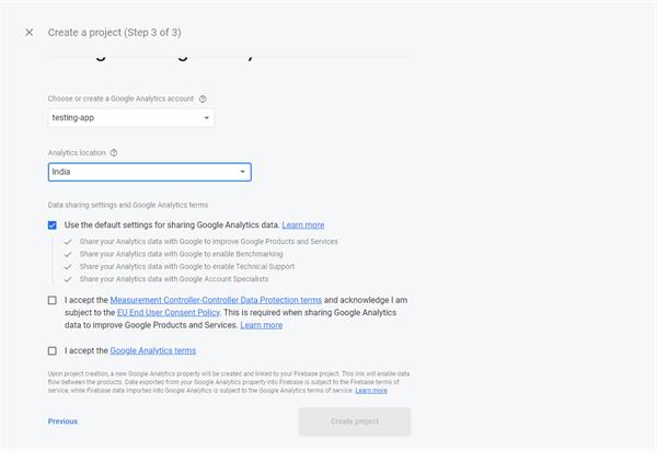 - Configure google analytic account-> Use odd and create new->accept all the acknowledge->continue.