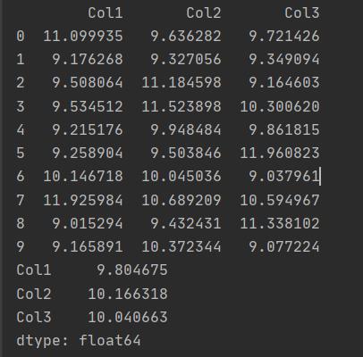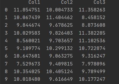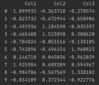 df = pd.DataFrame(np.random.randn(10, 3), columns=['Col1', 'Col2', 'Col3'])