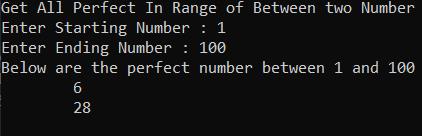 Console.WriteLine("Get All Perfect In Range of Between two Number");