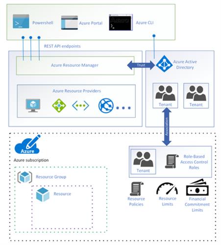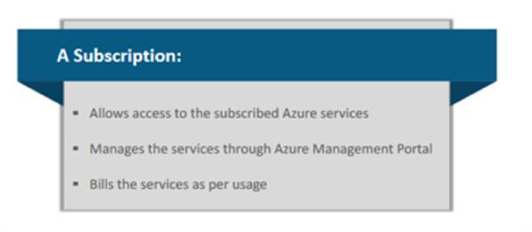 In Microsoft Azure, subscriptions are tied to a particular account, with access to usage reporting and billing. Azure subscriptions establish the set of resources available to a user