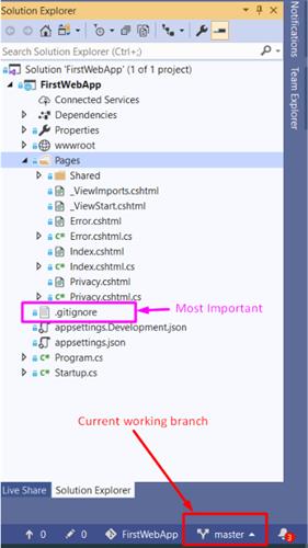 I have created a new dot net core project using Visual Studio 2019. I have taken a default template and enabled the version control using git. I’ll let you know how I have done this step by step.