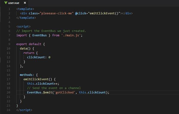Now our event bus is ready to use. so you need to import it in your components where you want to use it. And call the same methods which you would use if you were passing messages between parent and child components.