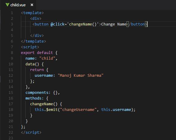 In the below example, I create one button with click method name is (changeName()) in child component.