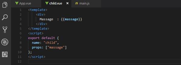 I am creating child component name as child.vue and we can declare the props it accepts data using the props option, our component looks like below