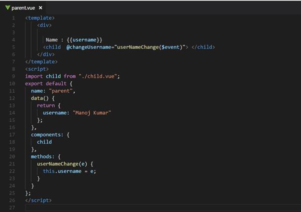 After that, we need to write a handler method that takes a parameter in the parent component or we can access these values inline by using a special $event variable.