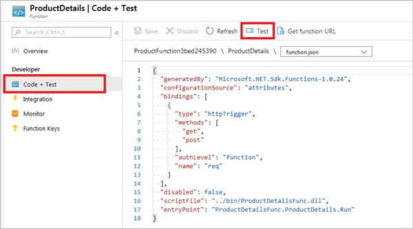 Now, let's test the ProductDetails function, to see how it behaves before we add it to API Management: