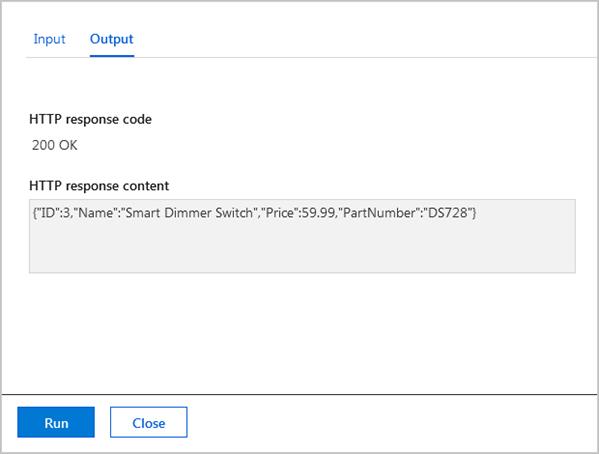 In the HTTP response, notice that the details of a product have been returned in JSON format. Also, notice the HTTP request was sent to a destination within the azure-api.net domain. This location is different from the azurewebsites.net domain where the original function app is hosted.