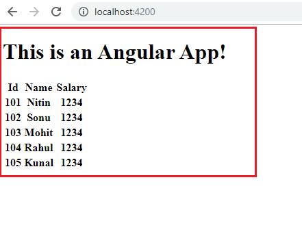 Bind that data with an HTML table or any element, this must be like the same as you want your PDF Document. In my app.component.html, I just replaced the default HTML with the following HTML code. In this code, I bind that Data variable from my component to this table.