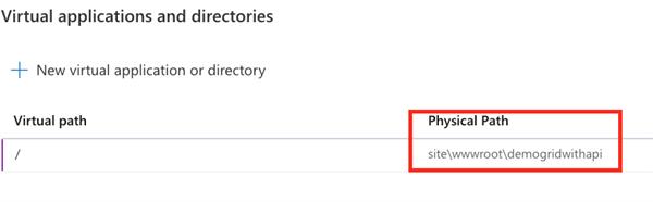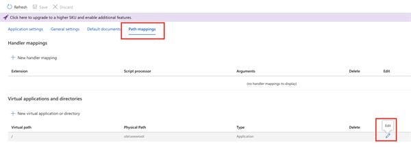 Step 3: Move to “Path Mapping” Tap and Edit the existing virtual path “site/wwwroot” and add the folder name you got in “dist” after the build command.