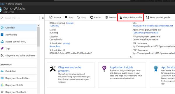 In dashboard panel, click on to ―Download the Get Publish Profile.
