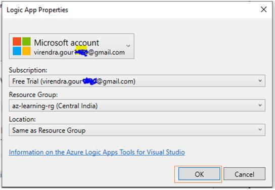 Step8. You will get below screen in your visual studio, and then you can follow my previous article Logic App Hands-On from step11 to end.