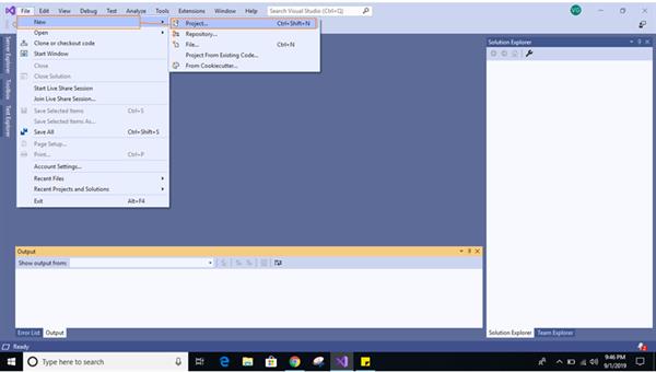 Step1. Open Visual Studio 2019 and follow File=>New=>Project.