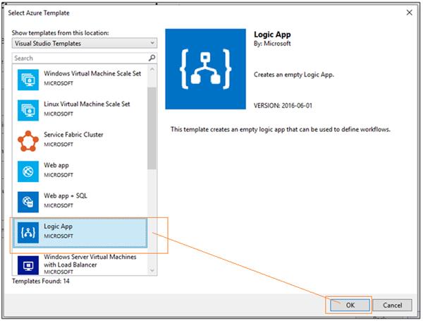 Step4. You will get templates. So select the Logic App and click on the Ok button.