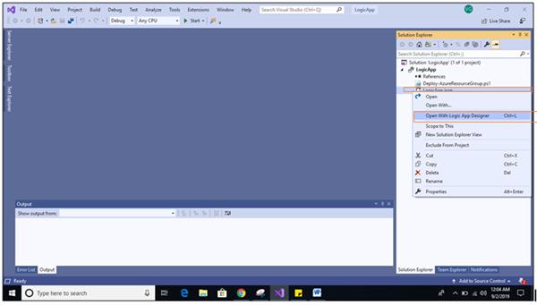 Step5. Now the project is created with few files, right-click on LogicApp.json and select the “Open With Logic App Designer”.