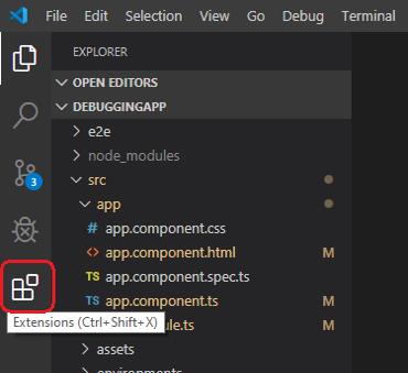 Now we need a google chrome debugger extension for visual studio code, So click on extension option at left side icons of VS code.