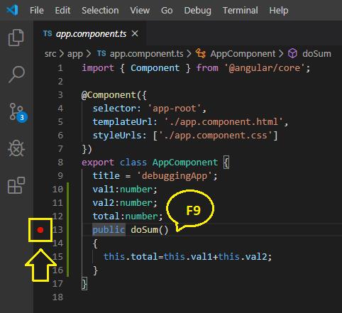 Now Go to the line that you want to debug when this will be executed, Now click at most left of this line or press F9 to add a breakpoint in this line.