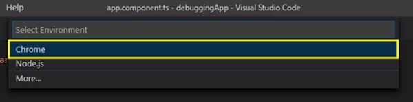First time for debugging we have to select the debugging environment for visual studio code debugging setting, Select Chrome.
