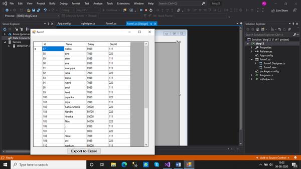 We will develop windows form with a datagridview which would be getting data from a table existing in the database. For enabling connectivity with the database, we’ll use Ado.net. Finally, a button would be placed on the form in order to export the dataTable to the excel sheet. For exporting dataTable to Excel we use a dll i.e. Microsoft.Office.Interop.Excel. Now let's understand the entire process in an elaborative manner performing each step.