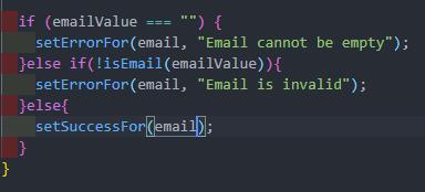 Next, add a class of success to one <div class="form-control> and error to another <div class="form-control> then add up CSS according to it to display color green and the check icon on the class of success and red color with the exclamation mark and also the error message on the class of error.