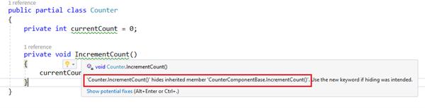 Answer: In this our partial class component’s “IncrementCount()” will be executed because right now it’s hiding the parent’s class function.