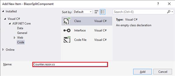 In Blazor components we can write C# logics with @code{} directory but in the real-time applications it’s quite hard to manage, debug and test the C# logics along with HMTL in the sample file so we have two option here to split it into two separate files: