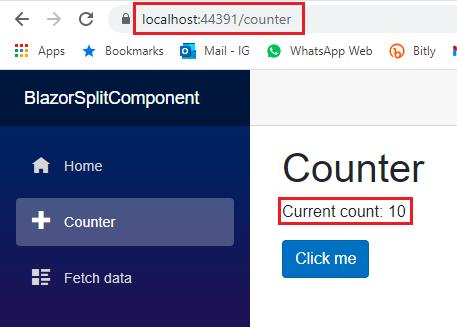 To test this, I have changed the increment value from 1 to 10 in CounterComponentBase class and after that, I just tried this in the browser.