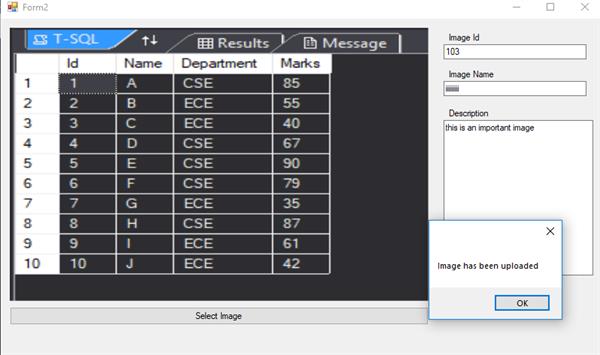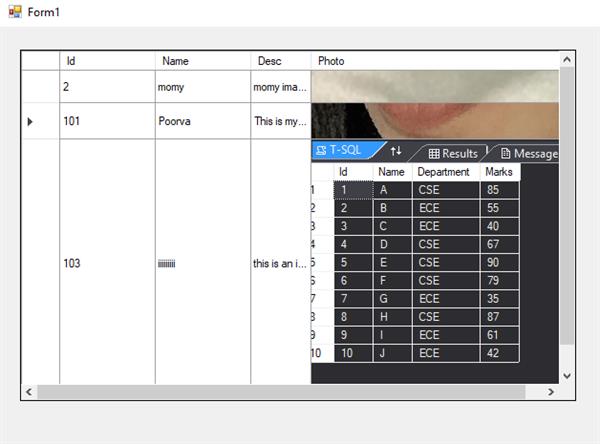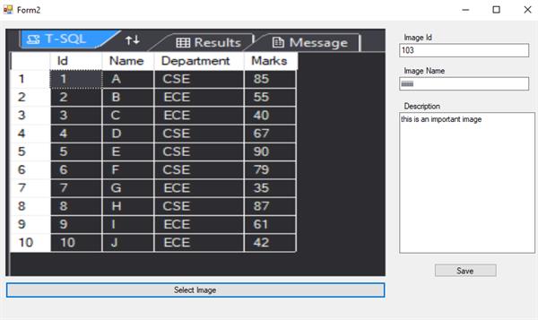 To check whether the data is saved within the table in the database, we dropped a DataGridView control and provided that particular table as the data source which was used to store the image details.