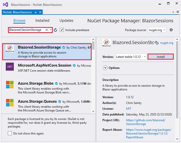 In the default sample application of the Blazor Server app, we need to add the first NuGet Package “Blazored.SessionStorage” by Chris Sainty it’s open-source and licensed by MIT so we can use this for our commercial applications too.