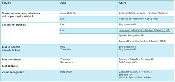 - Intelligence – Very important and buzz word on the market nowadays. It enables the natural and contextual interaction within your applications, using machine learning and artificial intelligence capabilities that include text, speech, vision, and search.