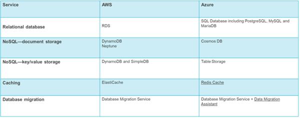 - Database – Database services refers to options for storing data, whether it’s a managed relational SQL database that’s globally distributed or a multi-model NoSQL database designed for any scale.
