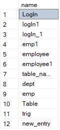 select name from sys.objects where type='U' ;
