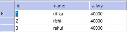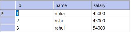 insert into table_name (id,name,salary) values (1,'ritika', 45000), (2,'rishi', 43000), (3,'rahul',54000);